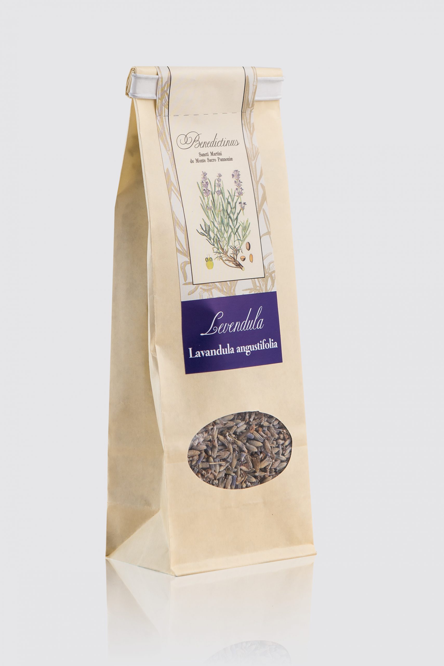 Szálas teáink egyenesen a Pannonhalmi Főapátság Gyógynövénykertjéből érkeznek a vásárlóink asztalára. Készítésükkor gondosan ügyelünk rá hogy a gyógynövényeknek csak a kiváló minőségű részei kerüljenek a csomagolásba. A levendula teájának hangulat kiegyenlítő hatása közismert. Nyugtató, stresszoldó, azonban élénkítő, frissítő főzetként is alkalmazhatjuk. Front vagy migrén okozta fejfájás kezelésére is bizonyítottan hatásos gyógynövény. Külsőleg, borogatás formájában égési sérülések, napégés, bőrpír és rovarcsípések gyógyítására, enyhítésére alkalmazható. Közismert, hogy szárított virága és olaja távol tartja a molyokat.