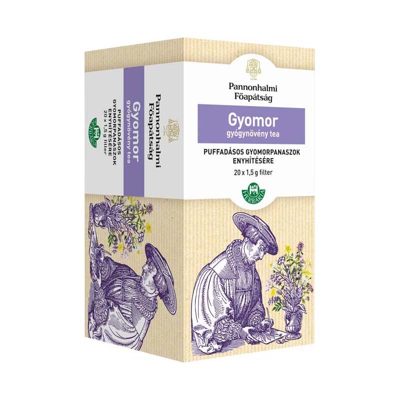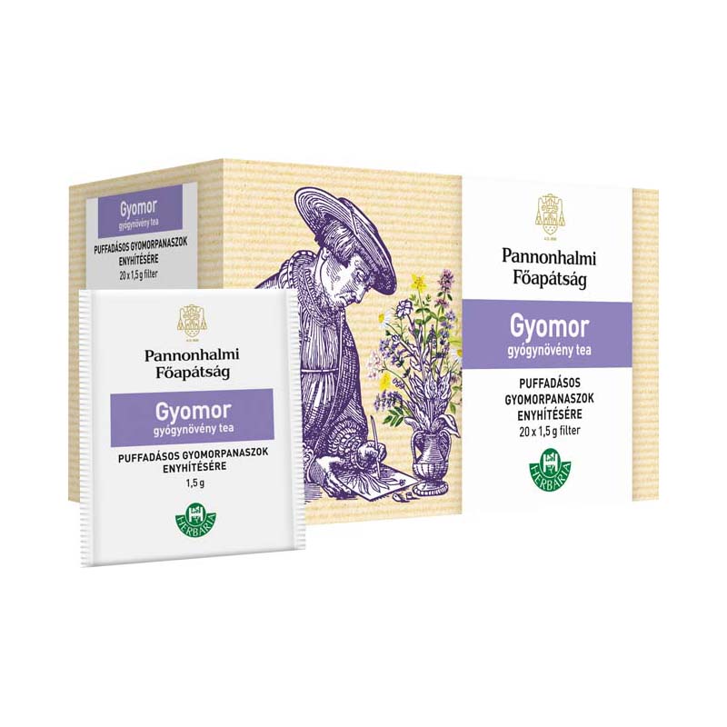 A gyógynövények a legrégebben használatos alapanyagok a népi gyógyászatban, hatásuk bizonyított, a bencés rend számos feljegyzést, receptet őriz ezzel kapcsolatban. Meghatározott keverékük speciális problémákra jelenthet megoldást. Most a Pannonhalmi Főapátság bencés szerzeteseinek évszázados gyógyászati, gyógynövényes tapasztalata találkozik a Herbária Zrt. szakértelmével 12 gyógyhatású teakeverék formájában. Minőség, szakértelem és tradíció melyek jellemzik ezeket a termékeketA gyomorvédő teakeveréket puffadásos gyomorpanaszok kezelésére ajánljuk. A doboz tartalma 20 db filter (20 x 1,5 g).Szívből ajánljuk mindenkinek aki panaszait a természet erejével szeretné enyhíteni!Összetevők listája: Igazi édesgyökér (Liquiritiae radix), Mályvalevél (Malvae folium), Kamillavirágzat (Matricariae flos), Fehér üröm leveles vagy virágos hajtás (Absinthii herba), Macskagyökér (Valerianae radix), Borsosmentalevél (Menthae piperitae folium), Keserű édeskömény termés (Foeniculi amari fructus)