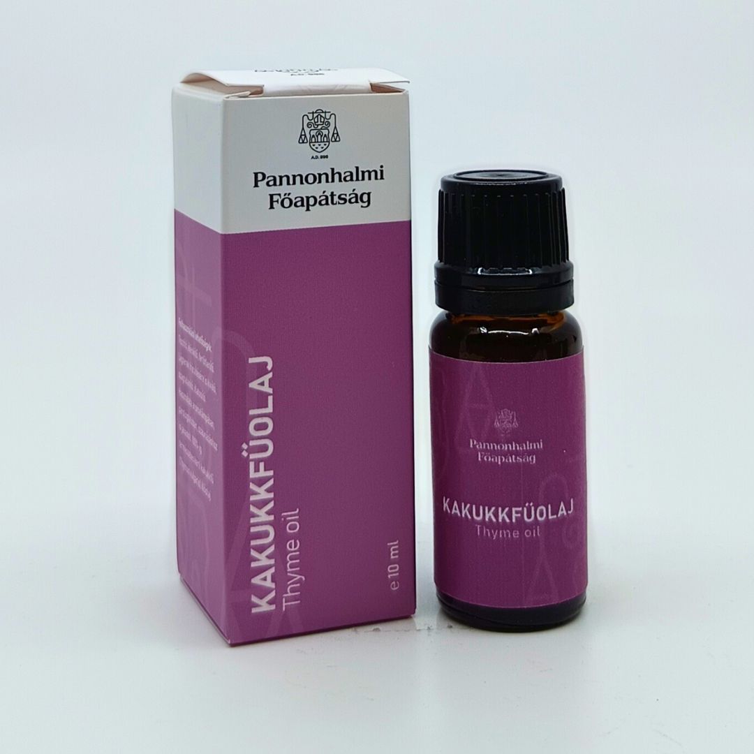 A Kakukkfűolaj egy 100 %-ban tiszta, aromás illóolaj a Pannonhalmi Főapátság Gyógynövénykertjéből, amelyet a kerti kakukkfű (Thymus vulgaris) virágos hajtásaiból nyernek gőzdesztilláció segítségével. Ez az intenzív, fűszeres‑gyógynövényes aromájú olaj már az ókorban is kedvelt volt aromaterápiás és mindennapi egészség‑támogató célokra. A kakukkfűolaj hagyományosan használható légfrissítésre, inhalálásra, diffúzorban, aromafürdőben vagy hígítva külsőleg, mindig ügyelve a megfelelő bázisolajjal való kombinációra.