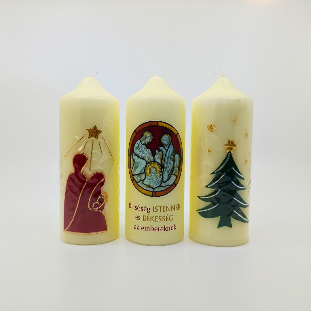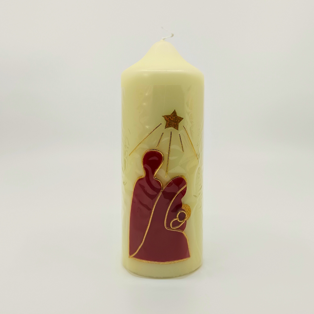 A Szent Család dombornyomott gyertyája a karácsony legszentebb üzenetét közvetíti: az összetartozás, a szeretet és a hit erejét. Kézzel készült, aprólékos gonddal formált gyertya, amely díszdobozban érkezik, készen arra, hogy az ünnepi asztal vagy az otthon meghitt dísze legyen. Finom kidolgozása és mély szimbolikája miatt nem csupán dekoráció, hanem lelki üzenet is – egy pillanatnyi megállás és elcsendesedés a rohanó ünnepi napokban.