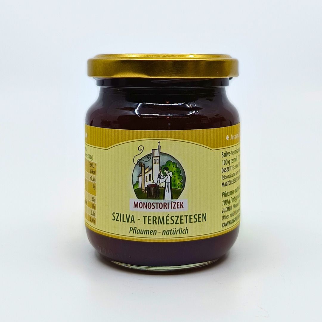 A Ciszterci Monostorban készült Szilva – természetesen egy letisztult, kézműves gyümölcskészítmény. Ez a készítmény a frissen szedett, érett szilva tiszta, eredeti ízét helyezi előtérbe. A monostori hagyományokra épülő receptnek köszönhetően ez a lekvár vagy gyümölcskonzerv‑szerű finomság nem tartalmaz sem mesterséges aromát, sem színezéket vagy tartósítószert, így minden kanálban a szilva karakteres, természetes aromái érvényesülnek.