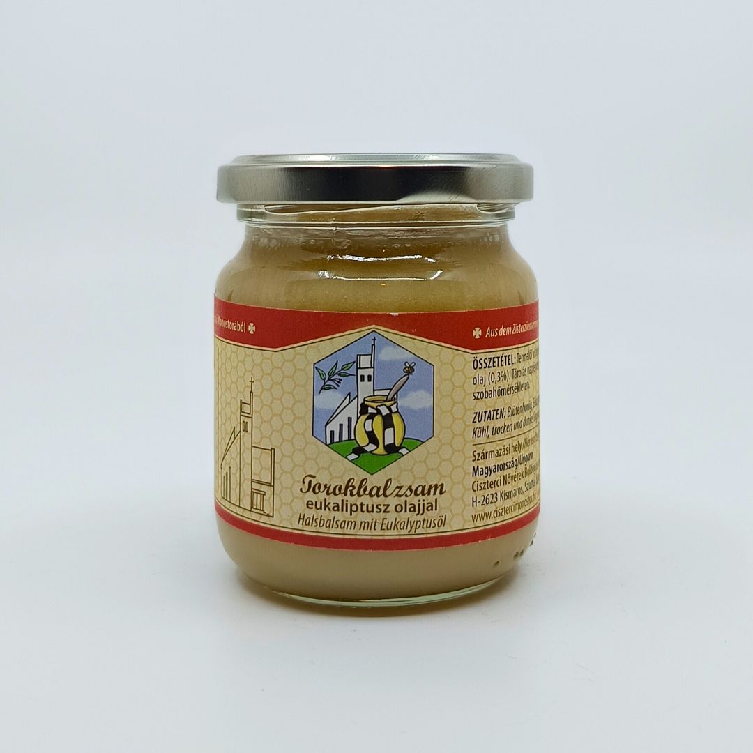 Ez a természetes torokbalzsam eukaliptusz olajjal hagyományos apátsági recept alapján készül a Ciszterci Monostorban. Gondosan válogatott növényi összetevőkkel, hogy hatékonyan enyhítse a torok irritációját és támogassa a légutak egészségét. Az eukaliptusz olaj frissítő illata tisztítja a légutakat, segít a torokfájás és rekedtség csökkentésében, miközben kellemesen hűsítő érzést biztosít.