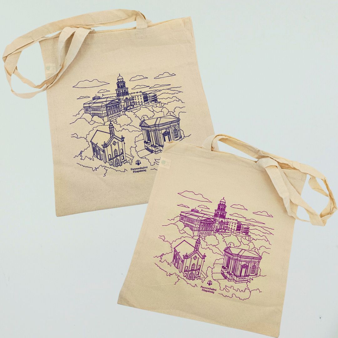 A Pannonhalmi Főapátság látképekkel díszített vászontáskája a hagyomány, a kultúra és a mindennapi praktikusság harmonikus találkozása. A természetes színű, strapabíró vászon anyagot Pannonhalma ikonikus épületeit ábrázoló grafika teszi különlegessé. A mintán megjelenik a Pannonhalmi Főapátság épületegyüttese, a millenniumi emlékmű és a Boldogasszony-kápolna, amelyek a magyar keresztény örökség meghatározó jelképei.